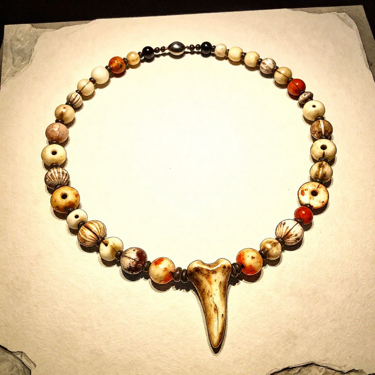 Polish the finished necklace by rubbing each bead gently with a soft piece of leather. Bone beads develop a warm lustre from the oils in leather and from skin contact over time. For added colour, rub ochre pigment into the bead surfaces — red ochre was extensively used on prehistoric ornaments, and its presence on beads is one of the key indicators of symbolic behaviour in the archaeological record. Shell beads found far from the sea indicate trade networks — Nassarius shells have been found hundreds of kilometres inland, demonstrating that even in deep prehistory, ornamental objects were valued enough to trade over great distances.