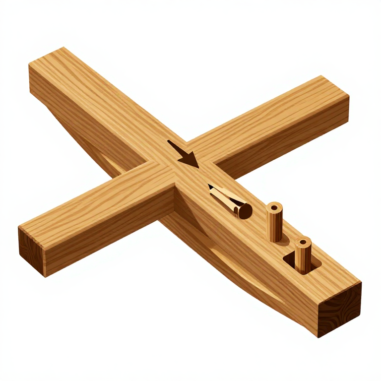 Cut tenons on both ends of each cross-beam to match the mortises in the runners. Each tenon should be a snug friction fit — tight enough to hold but not so tight it splits the runner. The cross-beams should protrude slightly (2-3 cm) beyond the outer face of each runner to provide anchor points for the lashing ropes that secure the cargo. Dry-fit all joints before final assembly. Drill a hole through each mortise-and-tenon joint for a wooden locking peg. This peg prevents the tenon from pulling out under the enormous lateral forces generated when dragging heavy stone blocks. The basic frame should now resemble a flat ladder lying on its side.