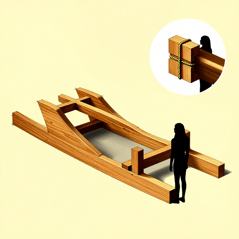 Construct a wooden sledge of the type used to transport massive stone blocks across the desert sands to pyramid and temple construction sites. This design, based on the only surviving ancient Egyptian sledge found at Deir el-Bahari, uses sturdy timber runners and cross-beams lashed together without metal fasteners.