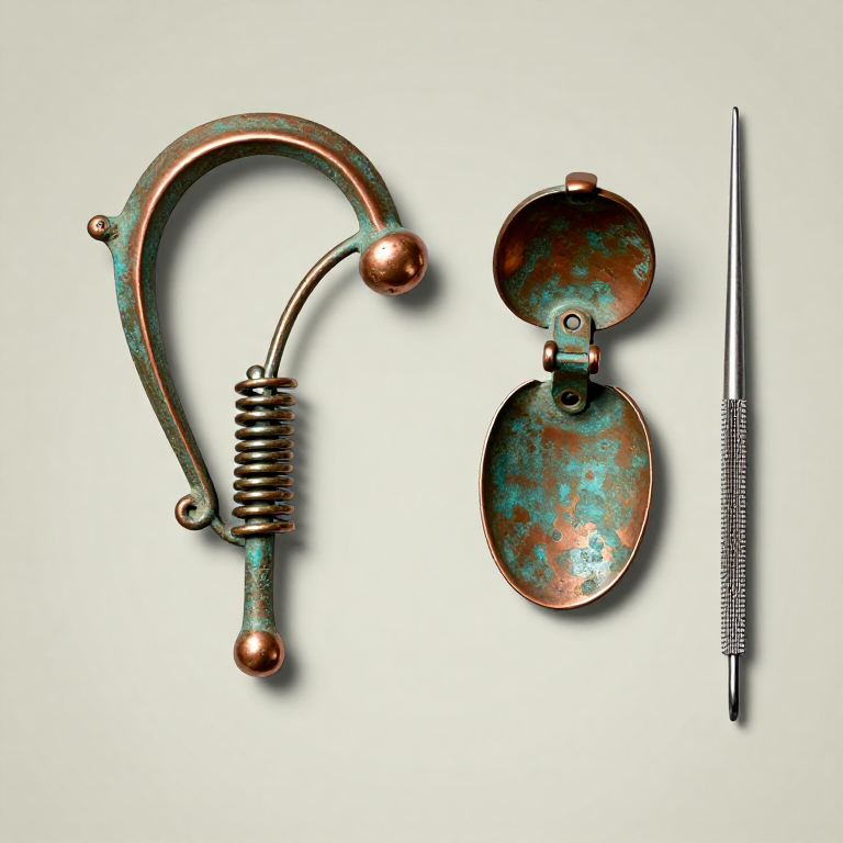 Begin with a length of bronze wire approximately 25-35 cm long and 1.5-2.5 mm in diameter. Anneal the wire by heating to dull red (500-600 degrees Celsius) and quenching in water — this softens the bronze and makes it pliable for bending. Straighten any kinks by rolling the wire on a flat surface under a flat board. The wire must be smooth and free of nicks or scratches, which would create stress concentration points that could cause the pin to break in use. Greek fibulae evolved from simple arched pins in the Geometric period (900-700 BCE) to elaborate decorated forms in the Archaic period, with regional styles distinctive to different parts of the Greek world.