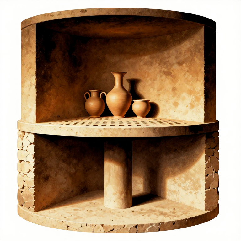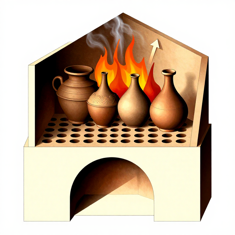 Roman pottery production reached an industrial scale, with standardised kiln designs producing millions of vessels annually. The most common type was the updraft kiln — a two-chamber structure where fire burned in a lower combustion chamber and hot gases rose through a perforated fire-floor into an upper firing chamber containing the pottery. This design allowed temperatures of 900 to 1050 degrees Celsius, sufficient to produce the characteristic red-slip terra sigillata tableware. This blueprint covers building a small updraft kiln based on excavated examples from La Graufesenque (France) and Arezzo (Italy).