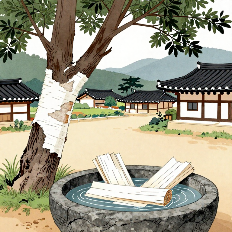 한지용 섬유는 1~3년생 가지에서 얻습니다. 직경 1.5~3cm, 곧고 가지가 적은 것을 선택합니다. 너무 굵은(3년 이상) 가지는 섬유가 거칠고, 너무 가는(1년 미만) 가지는 양이 적습니다.