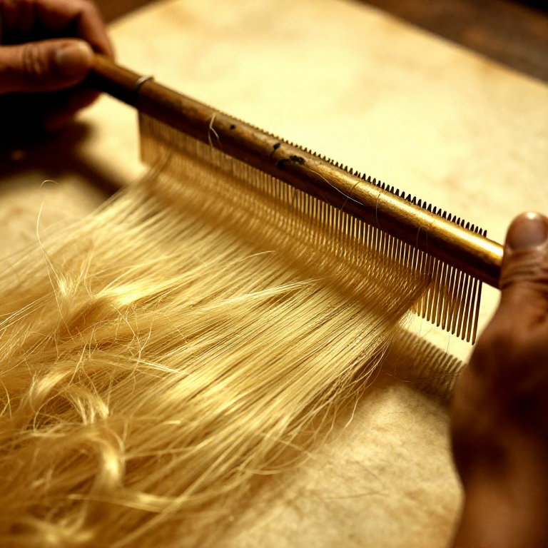 Utilisez des cardes à main avec des dents fines et serrées. Chargez une quantité minimale de fibre — la moitié de ce que vous utiliseriez pour l'alpaga. Passez la deuxième carde avec des mouvements ultra-doux, 3-4 fois seulement. Un excès de cardage endommage la fibre.