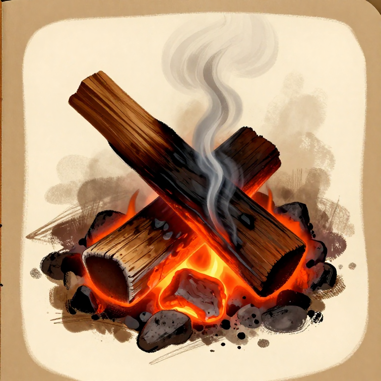 Continue rotating until the surface chars evenly to a deep chestnut brown — not black ash