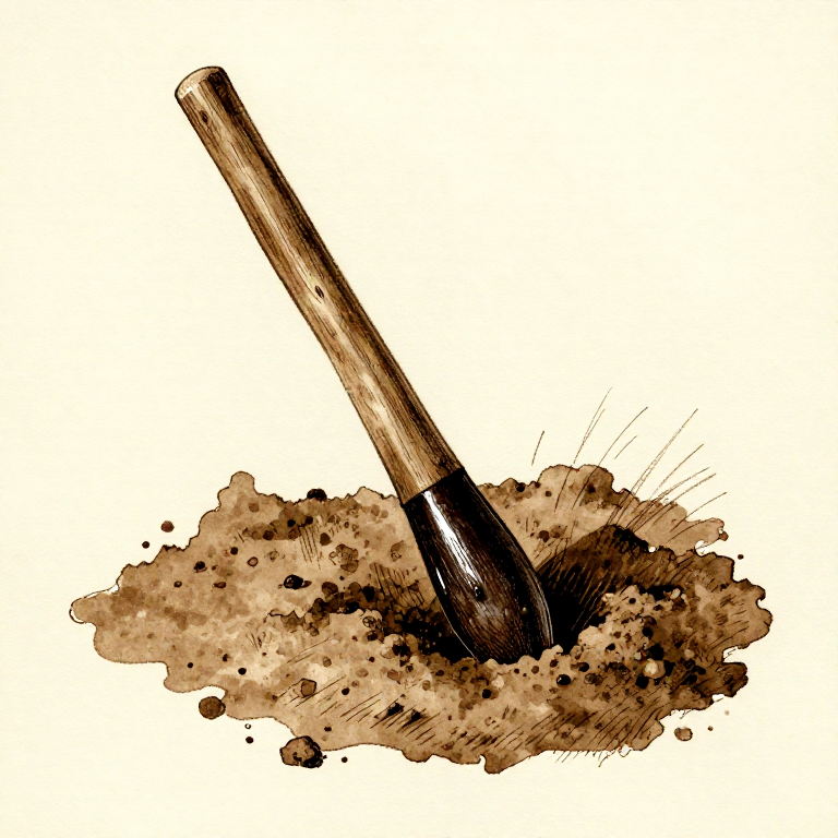 The digging stick is humanity's oldest farming tool, predating the plough by thousands of years. A straight hardwood branch, carved to a chisel point and hardened in fire, becomes a surprisingly effective implement for breaking soil, planting seeds, and prying roots. Fire-hardening drives moisture from the wood cells and compresses the grain, creating a tip harder and more durable than raw wood. This blueprint covers selection of the right wood, carving the tip geometry, the two-pass fire-hardening technique, and sealing the finished tool with animal fat.
