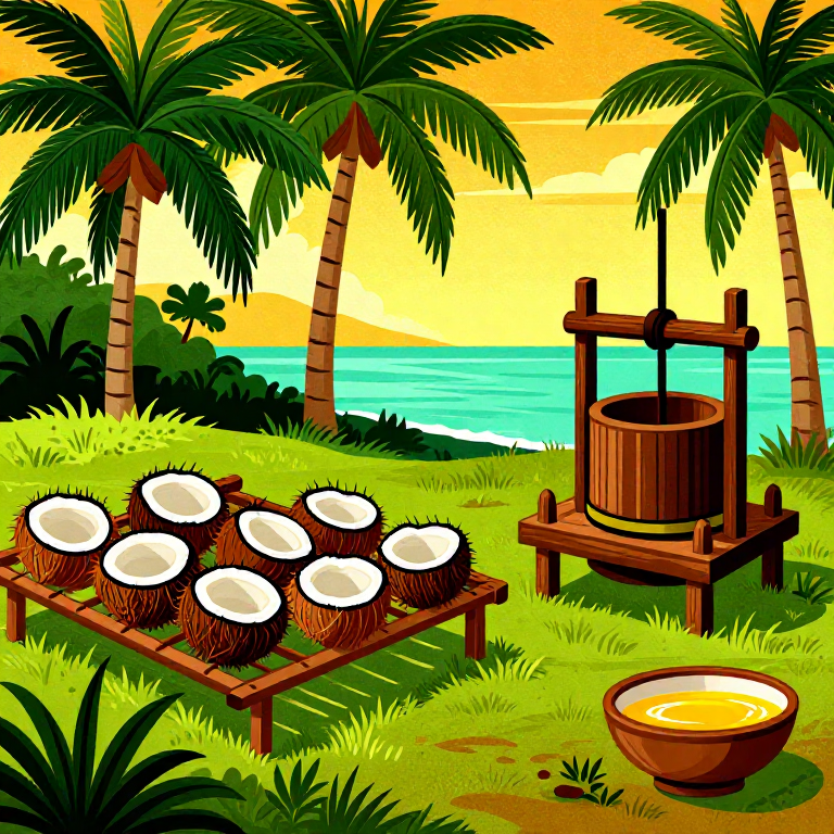 कोप्रा से नारियल का तेल बनाना — पारंपरिक इंडोनेशियाई विधि