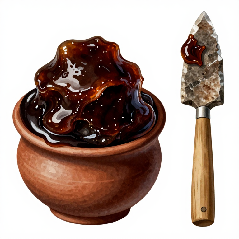 Store unused tar as a solid lump — it keeps indefinitely. Rewarm over flame to make it workable again. Chewing birch tar was common in Scandinavia (traces of teeth marks found on ancient tar lumps) and may have served as a natural antiseptic for gum infections.