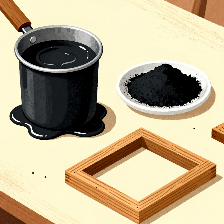 Melt beeswax in a double boiler (never over direct flame). Once liquid, stir in a small amount of lamp black or carbon black powder to darken the wax to a deep brown or black color. The dark coloring serves a practical purpose: when the stylus scratches through the dark wax, it exposes the lighter wood beneath, creating high-contrast visible text. Some ancient tablets used red wax (colored with red ochre) or plain yellow beeswax. You can also add a small amount of tallow or olive oil to the wax to keep it slightly softer and easier to inscribe, especially in cool climates. Mix thoroughly until the color is uniform.