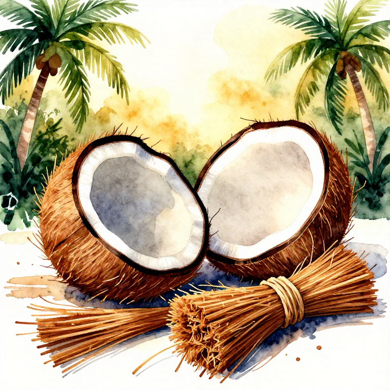 حصاد ألياف جوز الهند — من القشرة إلى الألياف
