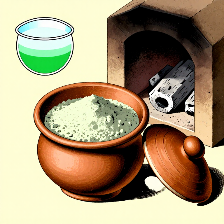 Transfer the blended powder into a ceramic crucible or shallow refractory dish. Do not pack it tightly — a loose fill allows heat to penetrate evenly and gases to escape during the reaction. The crucible should be filled no more than two-thirds full to allow for slight expansion of the mixture. Ancient Egyptian workshops at Qantir (Pi-Ramesses) and Amarna used open ceramic vessels for this synthesis, as evidenced by fragments of blue-stained crucibles found during excavations. Cover the crucible with a loose-fitting ceramic lid to maintain a stable atmosphere while still allowing air circulation, as the reaction requires an oxidizing environment to keep the copper in the Cu2+ state that produces the blue color.
