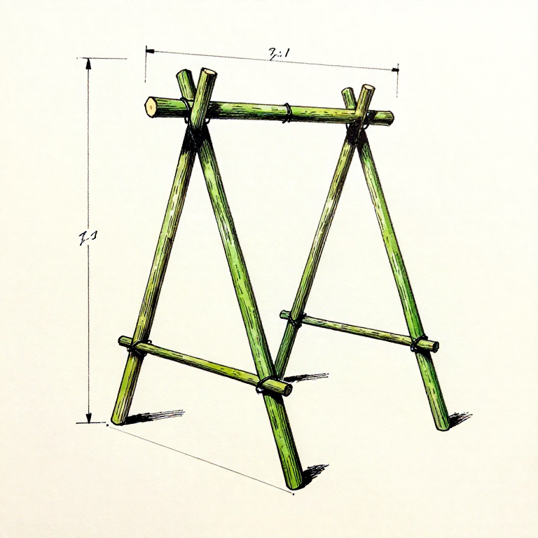 Construct a simple A-frame or tripod rack from green wood poles — green wood resists catching fire. Drive two Y-shaped uprights into the ground about 1 metre apart, then lay horizontal cross-bars between them at a height of 60-80cm above ground level. Add 2-3 layers of cross-bars spaced 15cm apart. The fish will hang from or rest on these bars. Alternatively, build a box frame by lashing four uprights together and running horizontal bars between them. The rack must be sturdy enough to hold the weight of several fish without collapsing.