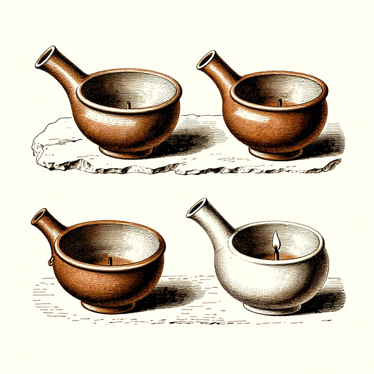 Shape a functional oil lamp from raw clay using the pinch-pot technique with an added wick channel. These lamps burned rendered animal fat or plant oils with a natural fiber wick, providing reliable light for tens of thousands of years before candles were invented.