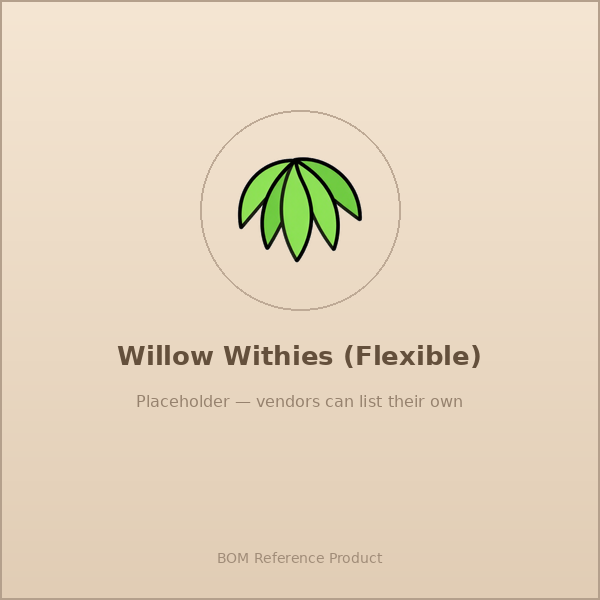 Cut hazel or willow stakes about 5-8 cm in diameter and 1.5 metres long. Sharpen one end of each stake to a point for driving into the ground. Cut 50-80 flexible withies (thin rods) from hazel, willow, or young ash — these should be 1.5-2 metres long and 1-3 cm in diameter. Green (freshly cut) rods are most flexible. If using dried rods, soak them in water for 24-48 hours to restore pliability. Hazel is the traditional material in the British Isles because it produces long, straight, knot-free rods when coppiced (cut to ground level on a 7-year rotation cycle).