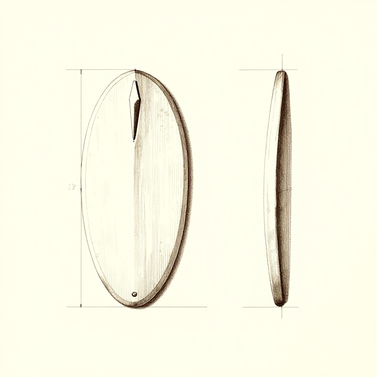 Use a flint scraper to shape the blank into a flat, tapered board — wider and thicker at the grip end, thinner and lighter at the hook end. The top surface should be flat or slightly concave to form a channel that guides the dart during the throw. Carve a comfortable grip at the proximal end — many prehistoric atlatls have finger loops, a handle knob, or simply a shaped contour for the thumb and forefinger. The balance point should be near the grip end so the distal end feels light during the throwing motion.