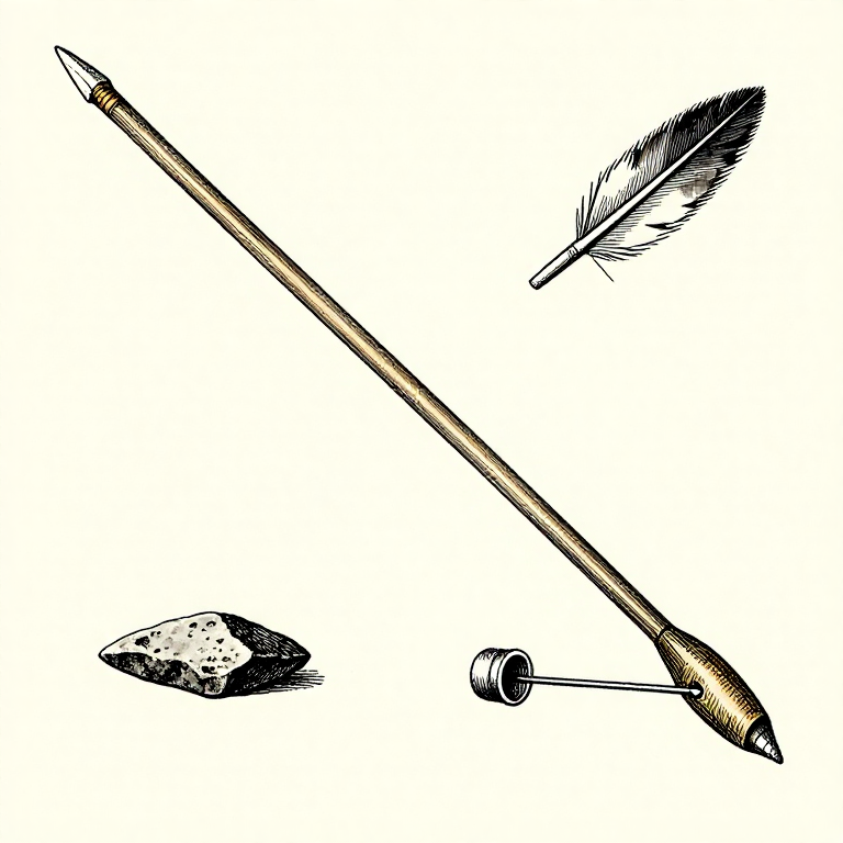 Atlatl darts are longer and more flexible than hand-thrown javelins — typically 1.5-2 metres long and about 1 cm in diameter. Select a straight, light shaft of river cane, mullein stalk, or a thin sapling. Straighten any bends by heating over coals and bending against the curve while hot. Drill or carve a small cup-shaped socket into the butt end of the dart to receive the atlatl spur. Fletch the dart with split feathers lashed to the rear third — fletching stabilises the dart in flight. Tip the front with a sharpened stone point lashed and glued in place.