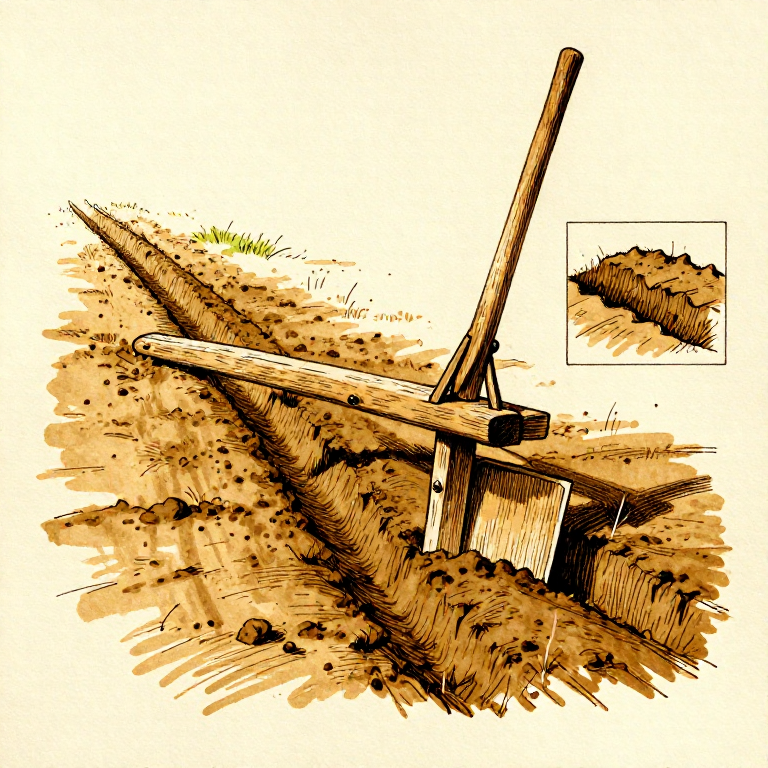 Construct an ard (scratch plow) — the earliest type of animal-drawn plow, consisting of a pointed wooden share that cuts a narrow furrow without turning the soil. The ard was invented in Mesopotamia by approximately 4000 BCE and spread to Egypt, Europe, and the Indus Valley. Unlike the later mouldboard plow, the ard does not invert the soil — it simply breaks and loosens it in a narrow groove.