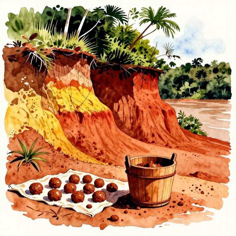 Anote o local de coleta, cor da argila, resultado dos testes de campo e data. Argilas de diferentes locais têm composições diferentes — afetam cor após queima, temperatura de fusão e plasticidade. Um bom ponto de coleta fornece material por anos.