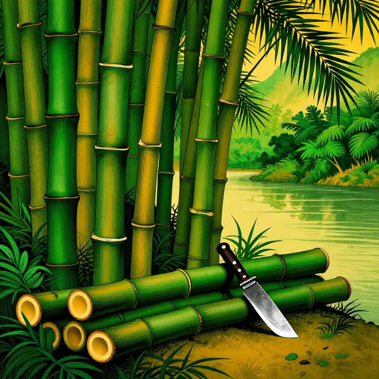 Chuan bi dao phay hoac cua tay sac. Dao phay truyen thong cua Viet Nam (dao rua) la cong cu ly tuong — luoi nang va sac, co the chat than tre mot nhat. Can them day thung hoac xe keo de van chuyen. Deo gang tay bao ho vi vo tre co nhieu silica, de gay tray xuoc va nhiem trung.