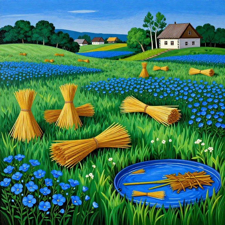 Льон висмикують з коренем, а не зрізають. Це зберігає максимальну довжину волокна. Захопіть жменю стебел біля землі та тягніть вгору рівним рухом. Працюйте рядами, висмикуючи стебла однакової довжини разом. Коріння струсіть від землі. Висмикування — фізично важка робота, плануйте перерви.