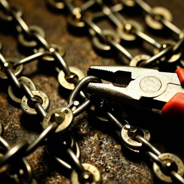 The 4-in-1 European pattern means every ring passes through four adjacent rings. Start by threading one open ring through four closed rings, then close and rivet it. This creates a basic unit. Lay this flat — the central ring will be surrounded by four rings in a diamond orientation. To expand, thread a new open ring through two adjacent rings from the existing fabric and two new closed rings, then rivet it shut. Continue this process, always linking each new ring to two existing rings from the growing fabric and two fresh closed rings. Work in rows for consistency. The fabric should lie flat and drape smoothly. If it buckles or curls, the ring orientation is incorrect — all rings in a row should lean in the same direction, alternating with the next row. A 10 x 10 cm patch of 4-in-1 mail in 10 mm rings contains approximately 400 rings.