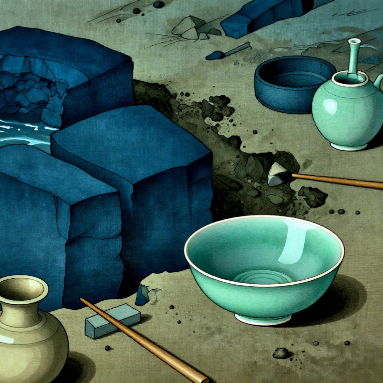 At the selected mining point, remove the topsoil (organic layer) with a shovel to a depth of 30~50cm. Soil mixed with leaves, humus, and sand is unsuitable for celadon. Begin mining when a uniform clay layer of gray-blue or gray-brown color appears. The more uniform the color of the clay layer, the better the quality.