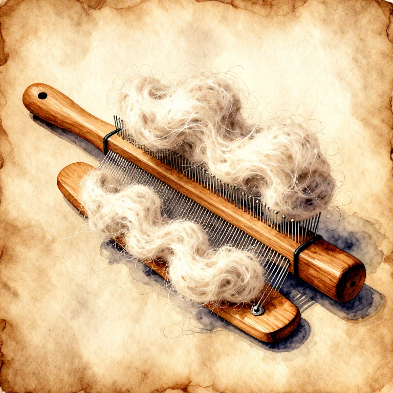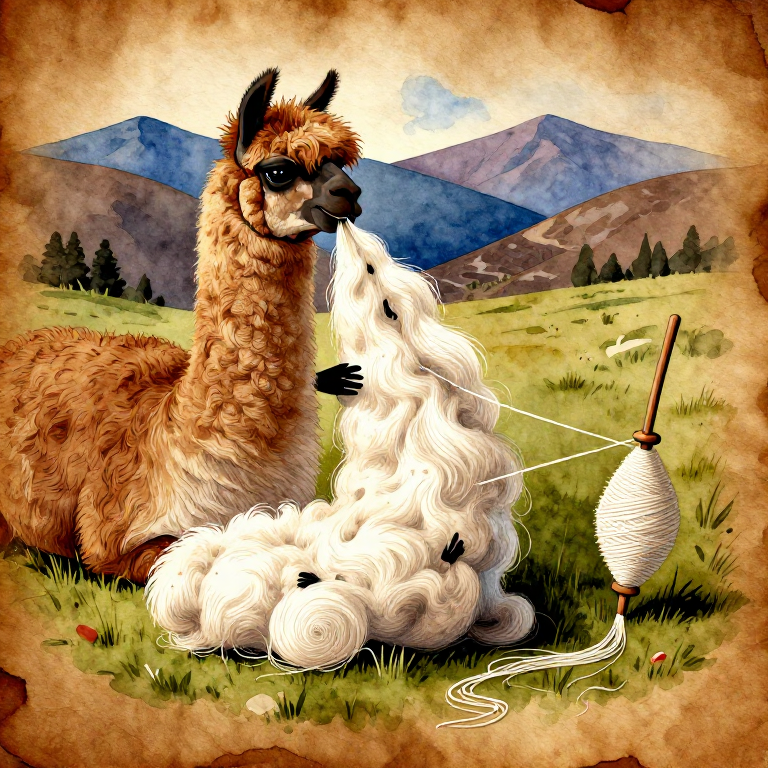 A lhama (Lama glama) tem uma pelagem de dupla camada: pelo exterior grosso e resistente (guard hair) e uma penugem interior macia e quente. O segredo para obter um fio de qualidade está na separação cuidadosa destas duas camadas — processo chamado dehairing. A penugem de lhama, quando bem separada, é macia, quente e quase tão fina como a de alpaca. Os povos andinos usam fibra de lhama há mais de 5.000 anos para cordas, tecidos e cobertores. Este blueprint cobre o processo completo desde o velo bruto até ao fio acabado.