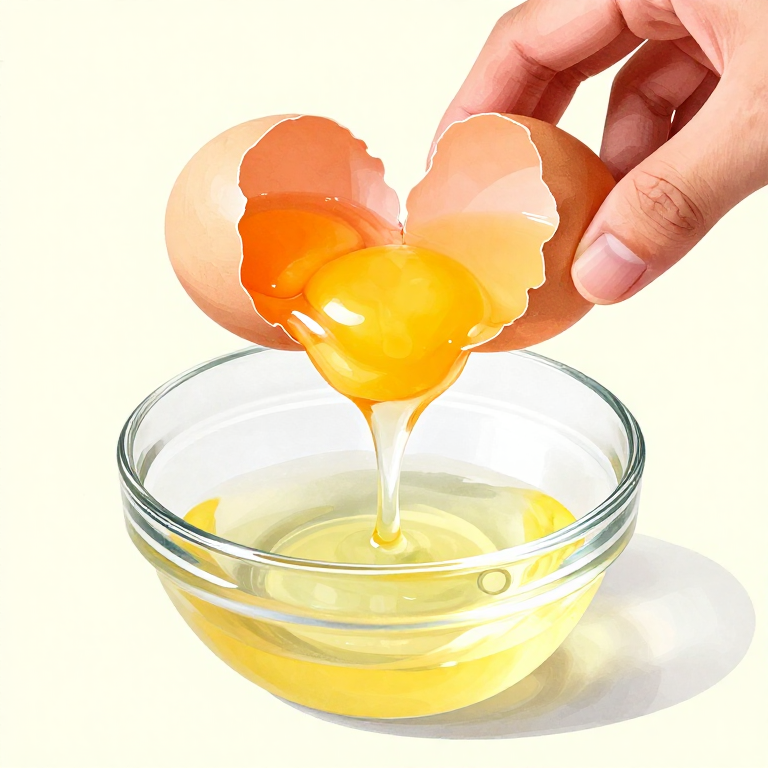 Crack the egg and separate the yolk from the white completely. Pass the yolk back and forth between your hands (or between the shell halves), letting the white drip away until only the yolk sac remains. The yolk sac is enclosed in a thin membrane — pick it up by pinching the membrane between your fingers and hold it over a clean container. Puncture the membrane with a pin or knife tip and let the yolk liquid drain into the container. Discard the membrane. The pure yolk liquid is your binder. The membrane must be removed because it creates lumps in the paint. One egg yolk produces enough binder for a typical painting session. Egg tempera must be mixed fresh daily — the yolk spoils within 24 hours at room temperature, and spoiled yolk produces weak, smelly paint.